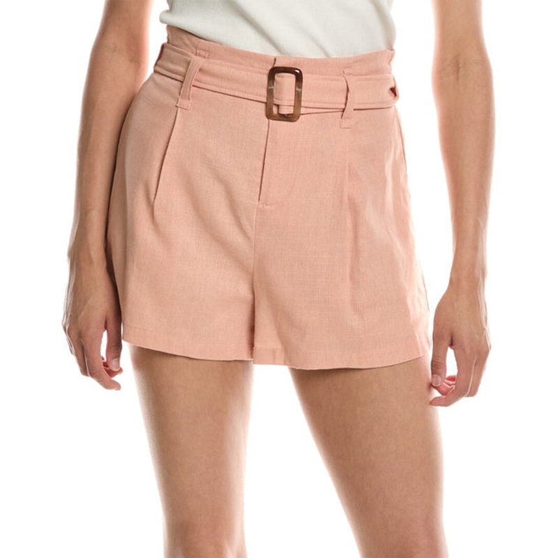 Introducing the Bishop + Young Summer Linen-Blend Short in Lotus, a stylish addition to your summer wardrobe. These shorts feature a pleated leg, dual side on-seam pockets, elasticized back waist, and belted waist for a comfortable fit and fashionable look. The zip fly with button and slide tab closure adds a touch of sophistication. Made with 44% Viscose, 35% Linen, 11% Cotton, and 10% Polyester, these shorts are perfect for warm weather. Hand wash recommended. Imported. Model is 5’10 and wearing a size small. Inseam approximately 2.75 inches with a 12.5 inch rise. Please note measurements may vary slightly by size. Elevate your summer style with the Bishop + Young Summer Linen-Blend Short.