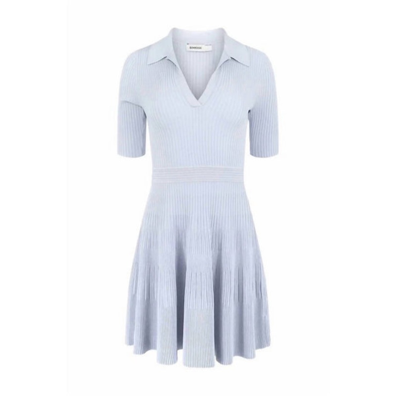 A short and breezy dress for those warmer days.The Patricia Dress in Blue Haze.This charming mini offers a fresh take on preppy style. The short sleeves and flared skirt. Rayon 66%, Nylon 33%, Spandex/Elastane 1%